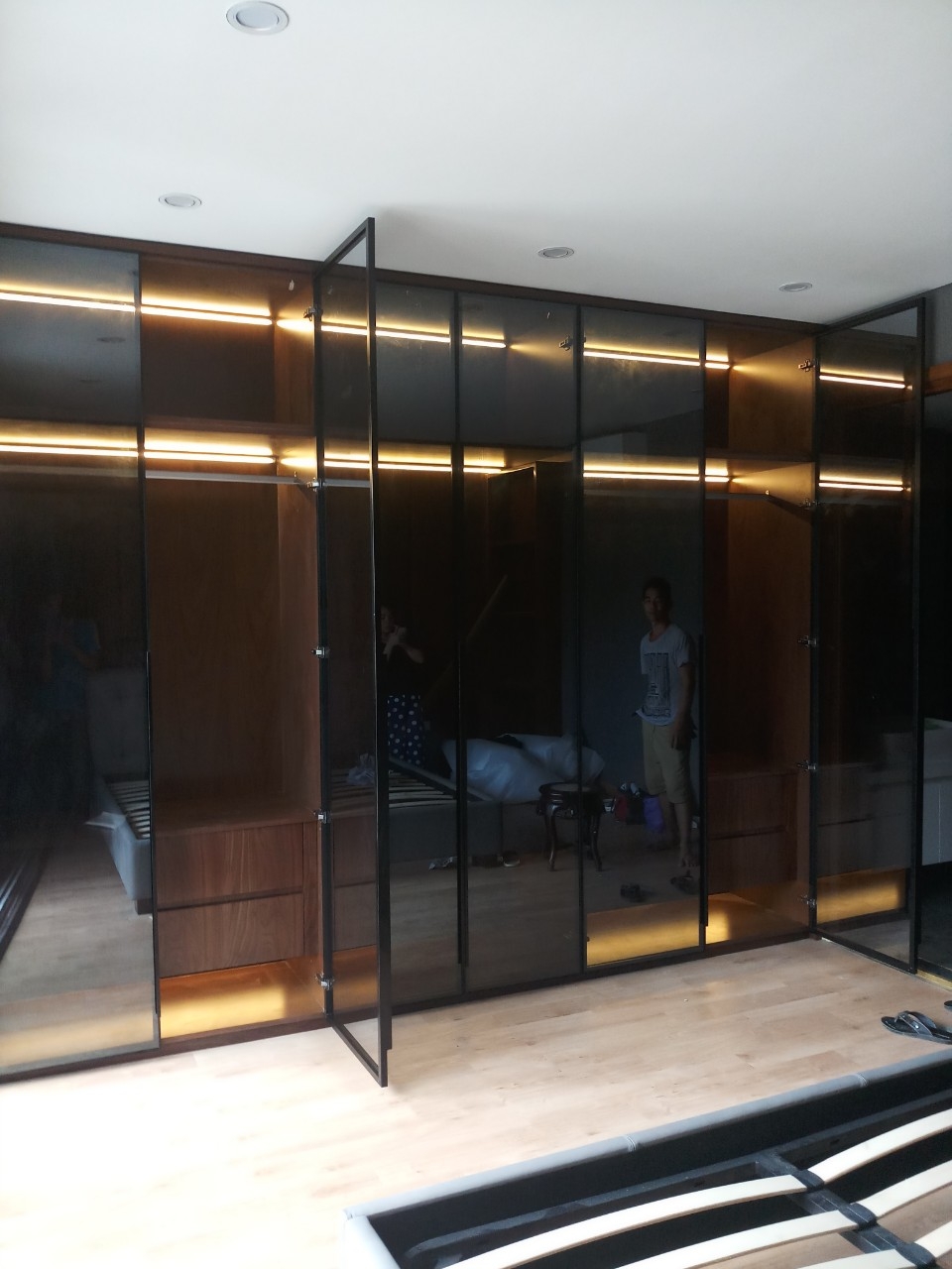Hoàn thiện và bàn giao thành công thiết kế mới sản phẩm CÁNH KÍNH TỦ QUẦN ÁO cho một khách hàng tại Yên Sở, Hoài Đức do Cánh Kính Hồng Phát thiết kế và thi công